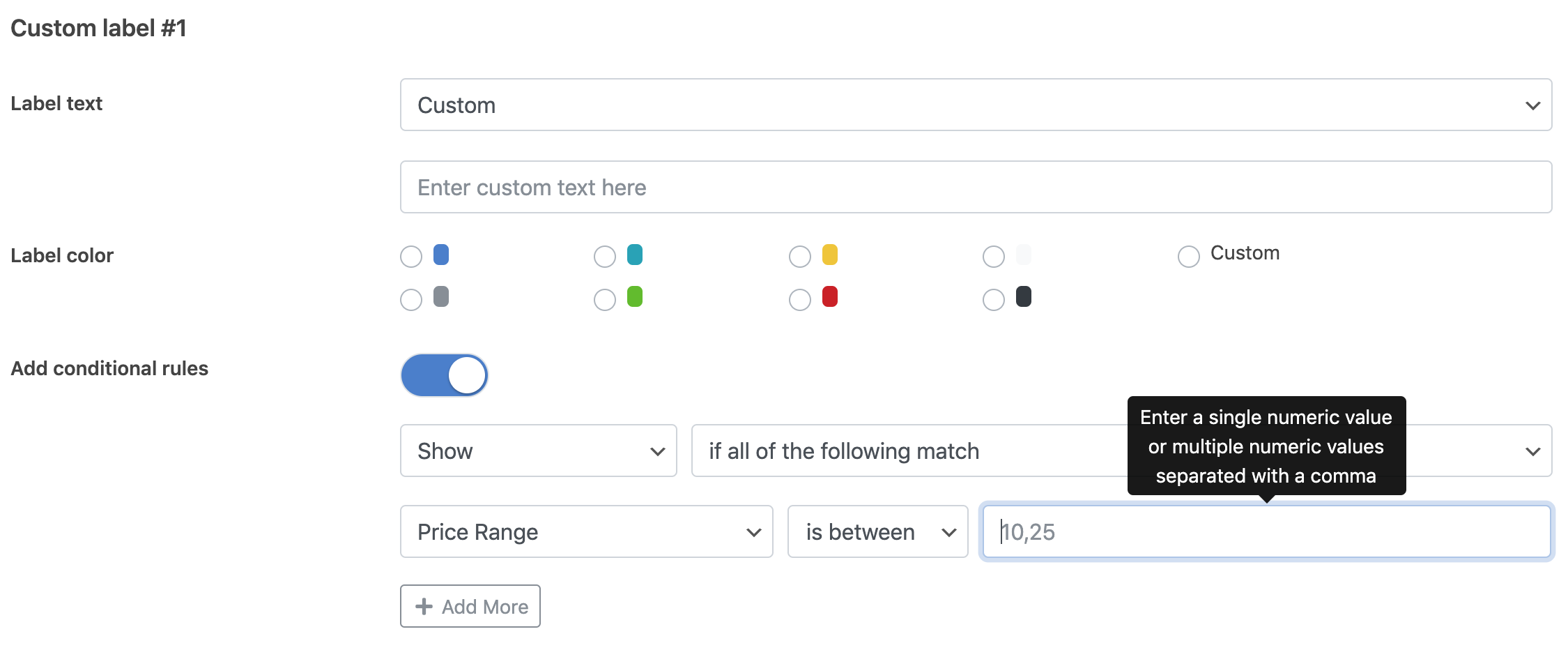 – Conditional rules support for custom labels